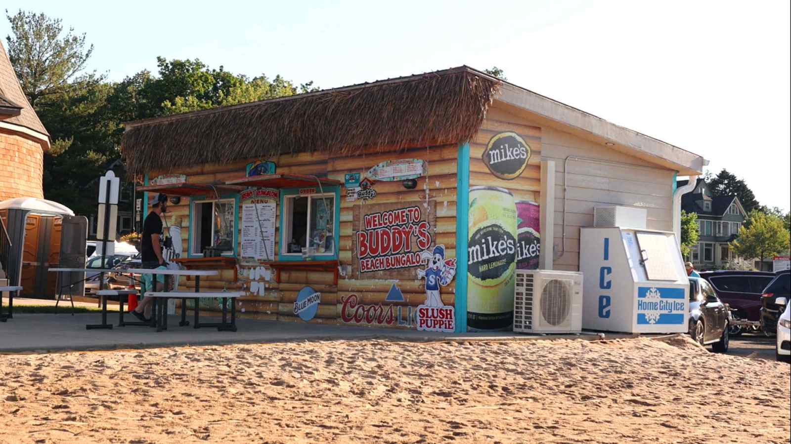 - Head to the dock and tie up for a bite to eat or just for some drinks at Buddy’s Beach Bungalow. Buddy’s has a casual menu of burgers, pizza, and a nice selection of drinks.